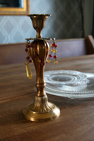 I love this project because it uses two things I see all the time a thrift stores: two glass plates and a brass candlestick. This even works with an over embellished and sad looking candlestick like this one! I mean seriously, the poor thing is a few plastic crystals short of a set...